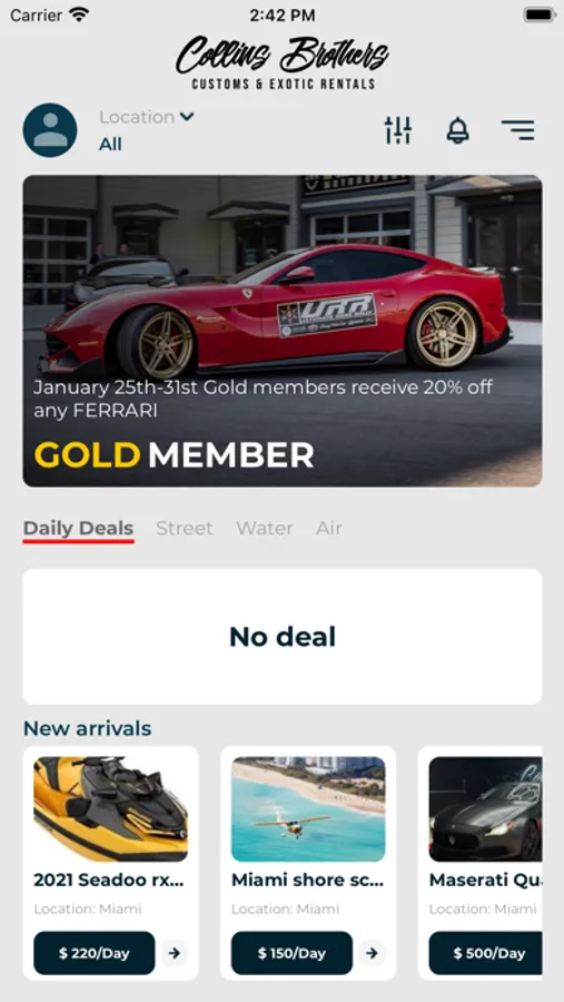 We made this app to simplify the renting experience. Once you’re verified out app allows you to chose the rental experience of your choosing quicker than ever before. Multiple locations and vehicles that you can drive, Fly, or use on the water