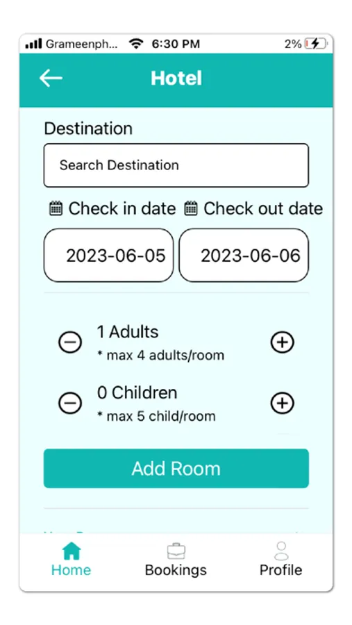 Select your traveling date, number of people (adult and children), your destination, and search for the best options for accommodation (hotels, resorts, private apartments). You can also see the details and ratings for each option, and choose the best one for yourself.