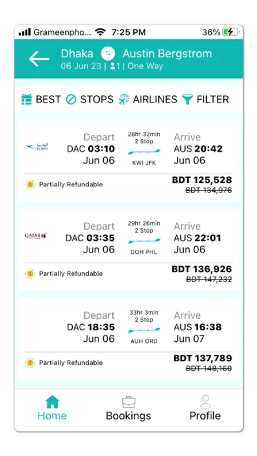 Find the best flights (domestic, international, one way/round trip) according to your budget, destination, traveling date and your preferred airlines.