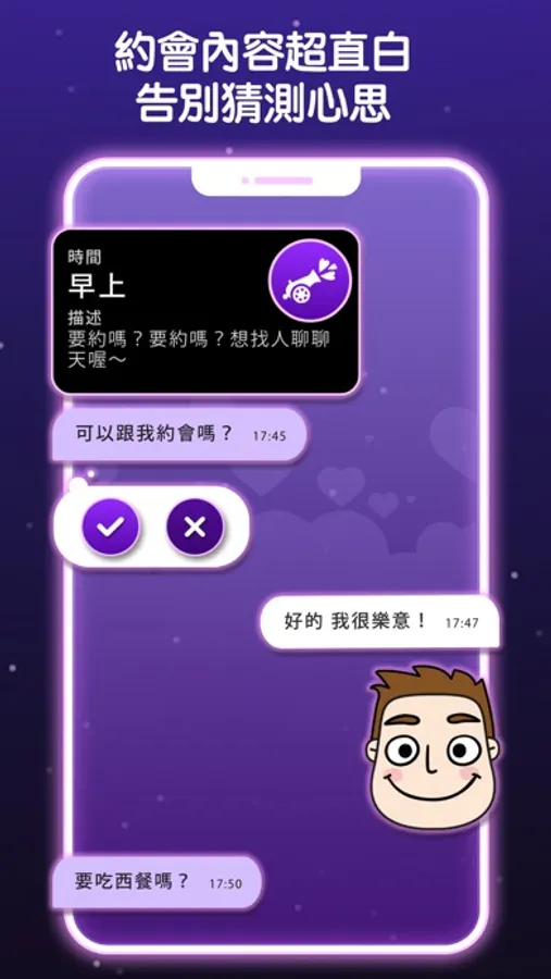 ParPar為您提供大膽的約會新方法,不再需要猜度對象的心思,告別傳統約會APP的不便,直接為您提供最快速直接的約會機會!