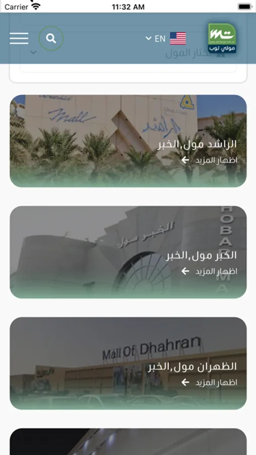 مولي توب هو دليل شامل للمولات في جميع الدول العربية حيث يعتبر مرجع موثوق يضم المولات بعنوانيها التفصيلية ودليل الهاتف وكافة الأنشطة التجارية التى يقدمها المول وكذلك أيضا تفحص كافة المحلات والمنتجات عبر الإنترنت فهو خيارك الأول للإستمتاع بتجربة شاملة ليس لها مثيل بالإضافة إلي أن التطبيق يساعدك بالإستمتاع بتجربة أكثر ثراءً في المول، حيث أننا نضيف بإستمرار مزايا وخدمات ستساعدك في الوصول إلى المول لتلبية إحتياجاتك.