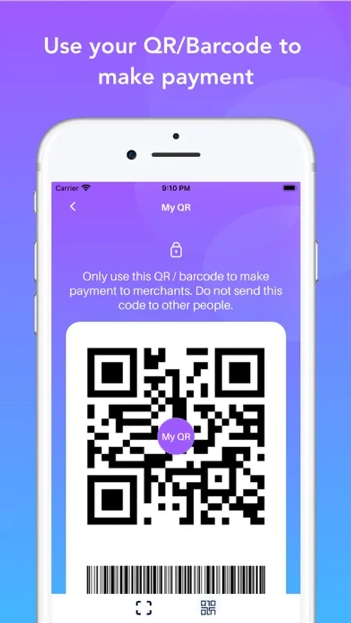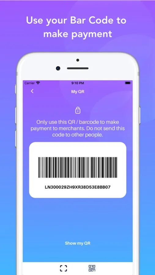 5. Generate your personal XNAP QR (or barcode) on the XNAP App to be scanned by our XNAP partner merchant.