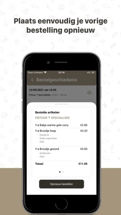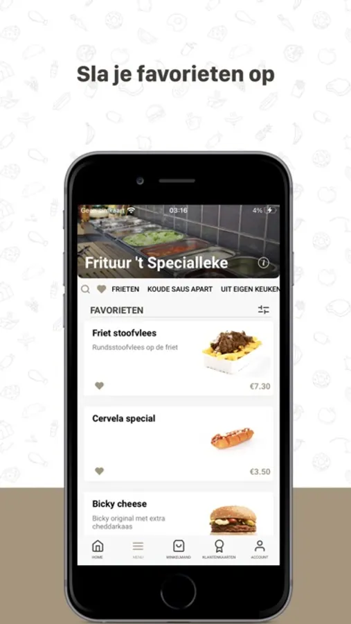 Via de favorieten functie of je bestelgeschiedenis ben je slechts enkele vingerdrukken verwijderd van een nieuwe bestelling. Echt handig!
