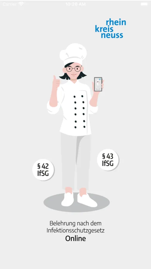 Mit der App unseres Gesundheitsamtes können Sie bzw. Ihre Mitarbeitenden die gesetzlich vorgeschriebene erste Infektionsschutzbelehrung bequem von zu Hause oder unterwegs online erledigen. Die amtliche Teilnahmebescheinigung, die am Arbeitsplatz aufbewahrt werden muss, erhalten Sie bequem durch Download, E-Mail oder per Post.