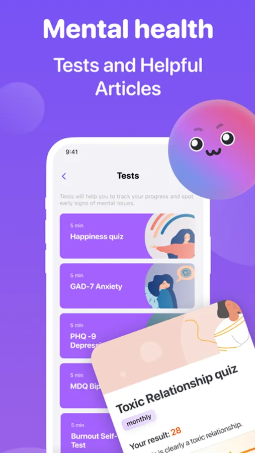 Psychological tests and articles that will allow you to understand if there is a reason to contact a specialist (in a future release);