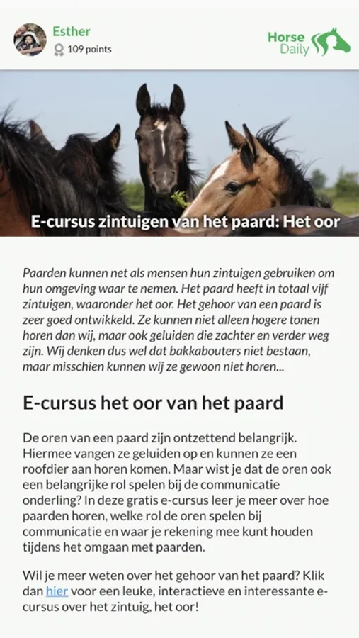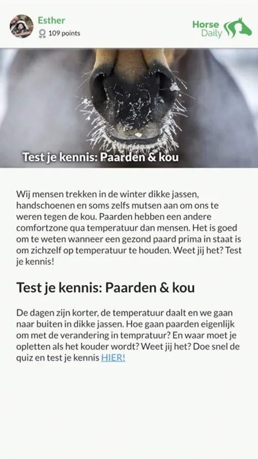 In the HorseDaily App you’ll find video’s, vlogs, blogs, tips, podcasts and interactive quizzes by many different experts in the equestrian world. It’s full of information about an incredible range of topics including horse health, training, nutrition, behaviour and so much more.
