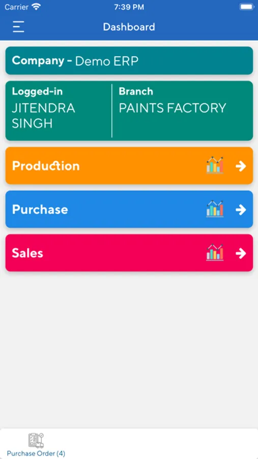 By the help of Eazy ERP app a user can easily check current Date's, Month's or Year's sales or purchase in numbers (in Lakhs) as well as in Graph Form in the dashboard.