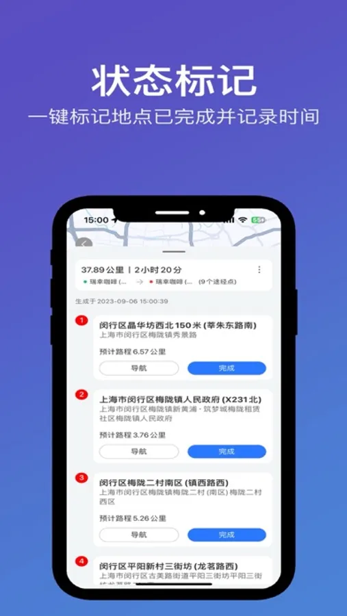 ·完成标记:在完成某个地点的任务后,您可以在路线中标记为已完成,帮助您更好地管理和跟踪进度。