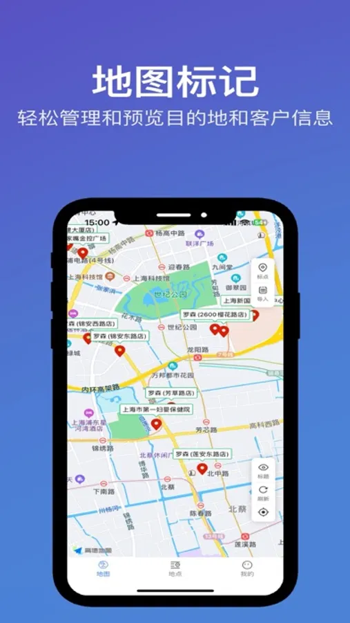 ·地图标记:轻松在地图上标记您的目的地,无论是客户地址、推广地点还是其他重要位置。