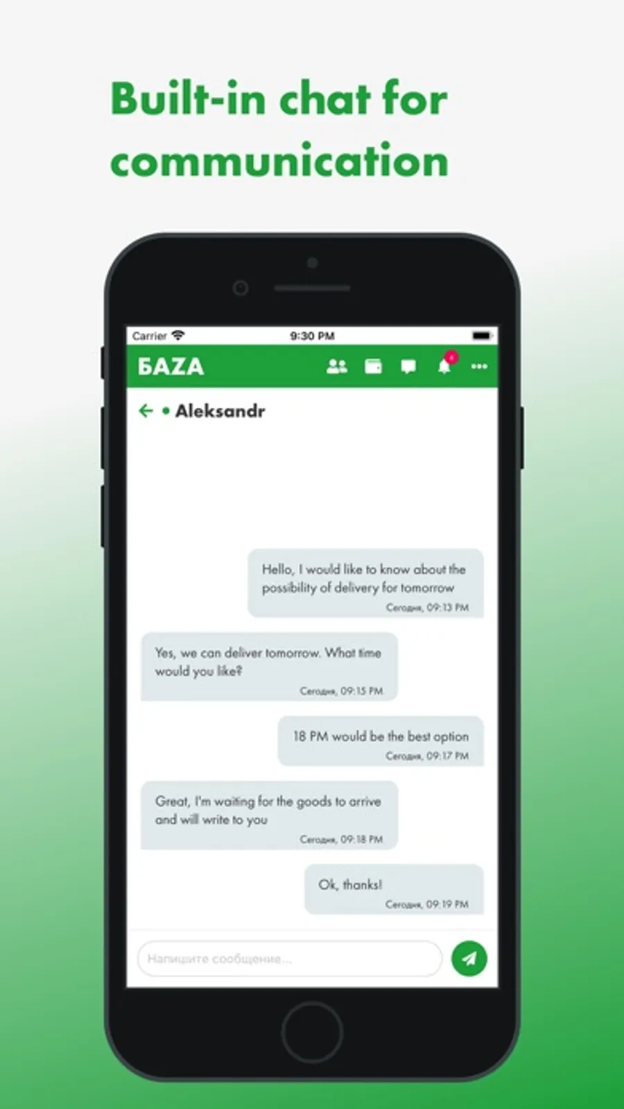 You get individual conditions from the marketplace: deferred payment, free shipping, bonuses and promotions. The ability to create Purchase Orders and conduct trades in decreasing steps according to your own assortment matrix, in order to quickly obtain the best prices from manufacturers and exporters, without the participation of intermediaries. BAZA guarantees timely delivery of quality products, due to a 3-stage quality control of goods and well-established logistics in Russia.On the marketplace, you can quickly, easily and conveniently find and order the required range of goods with delivery to any region of Russia. Deliveries are carried out promptly and on time in accordance with your requirements, and optimization of procurement processes with marketplace services will save you time and money.