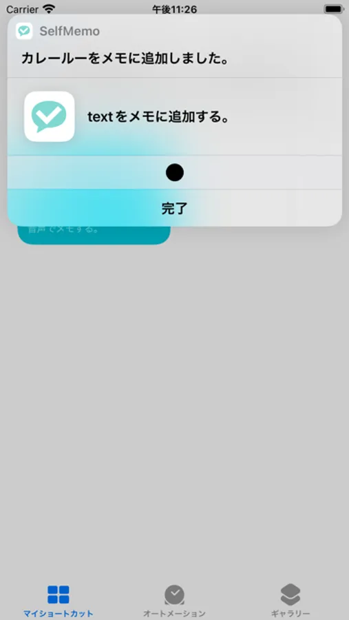 iPhoneのショートカットアプリと連携して、音声のみでメモを登録することもできます。