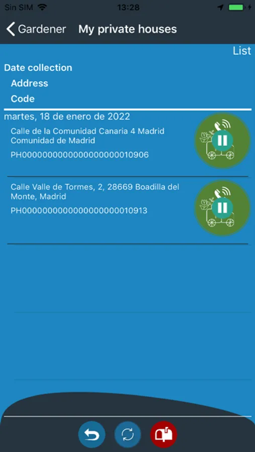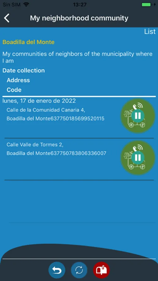 Es muy sencilla, consta de un solo menú, donde registrar la comunidad de vecinos que deseas gestionar el residuo de jardineria y dos opciones más donde podrás solicitar que te vengan a recoger el residuo.