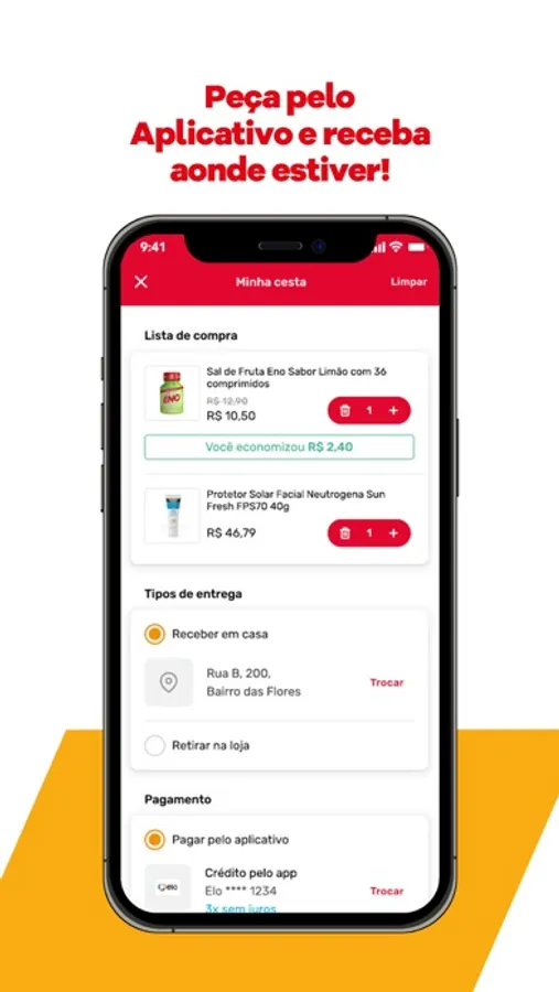 Receba o seu pedido aonde estiver ou retire diretamente na loja em que você fez o seu pedido pelo App.