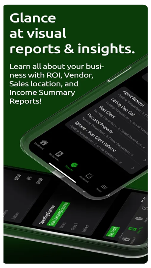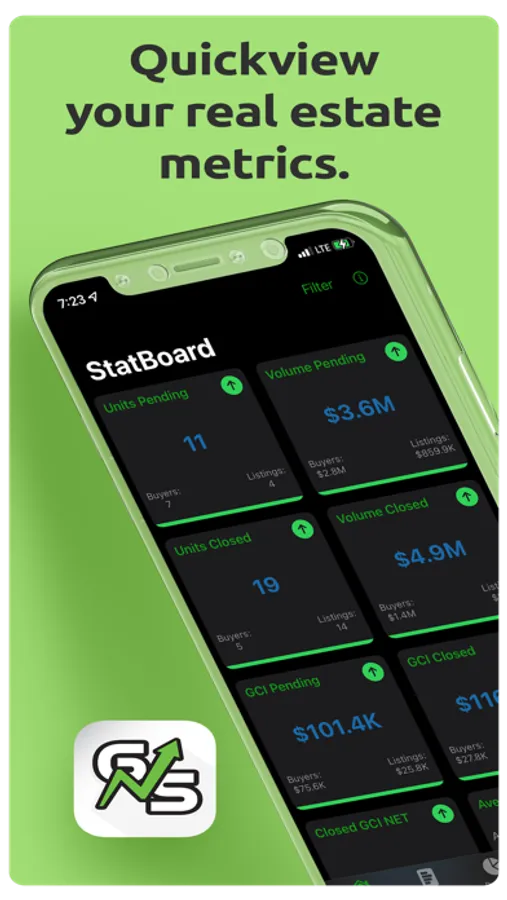 GreenStats empowers Realtors to keep the profit in their pocket by displaying key performance indicators and profit tracking in the palm of their hands. Our platform was built by a top performing Realtor who hand drew every screen to create one of a kind experience for Realtors. With GreenStats, you will never have to wonder or count the amount of pendings, closings, listing taken, GCI, Profit, and more. The best part is, the information you need to succeed is displayed at your finger tips! If you don’t know your numbers you don’t know your business and GreenStats has made it easier than ever to understand your business as a Realtor.