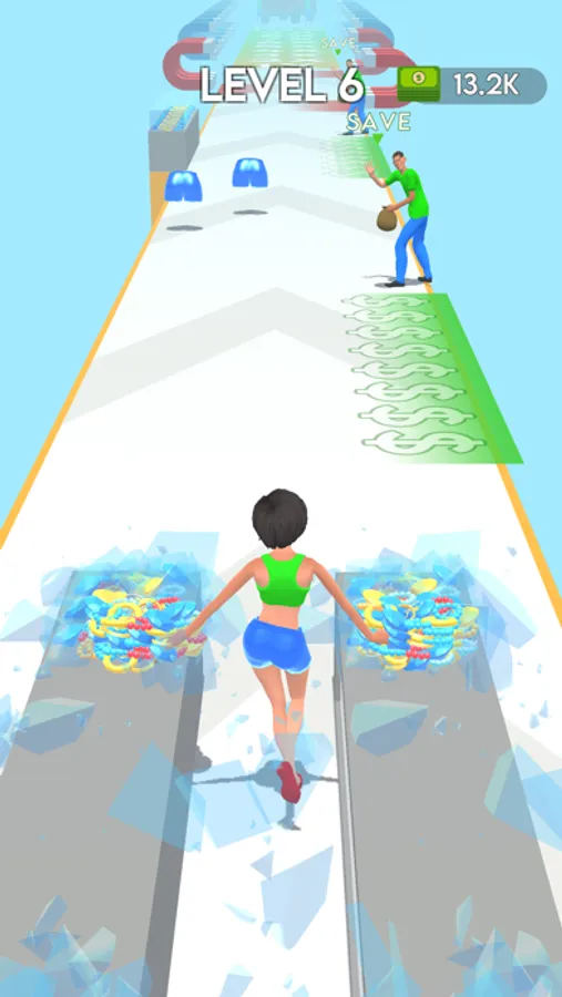 Collect all gems and avoid from security. Reach to your crew!