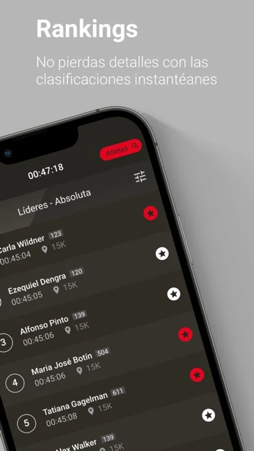 Además, podrás ver de forma rápida cualquier clasificación al instante: por categorías, los primeros corredores por tramo y el último punto alcanzado de los participantes a los que sigas.