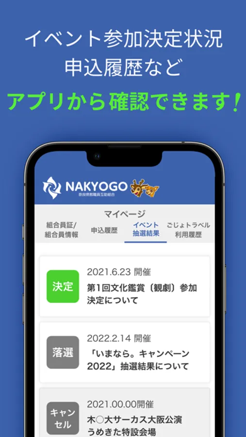 ● イベント(厚生事業関連):申込・結果通知・履歴確認