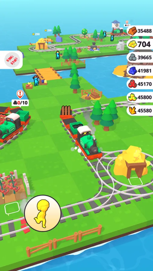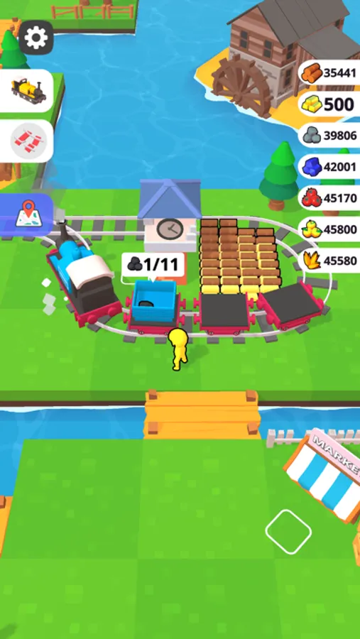 Develop your city train station with city & train buildings and produce various products. You need to collect gold, wood and stone, spread the railway. After connecting to the railway, the train will start passing and run. You can get your revenue.