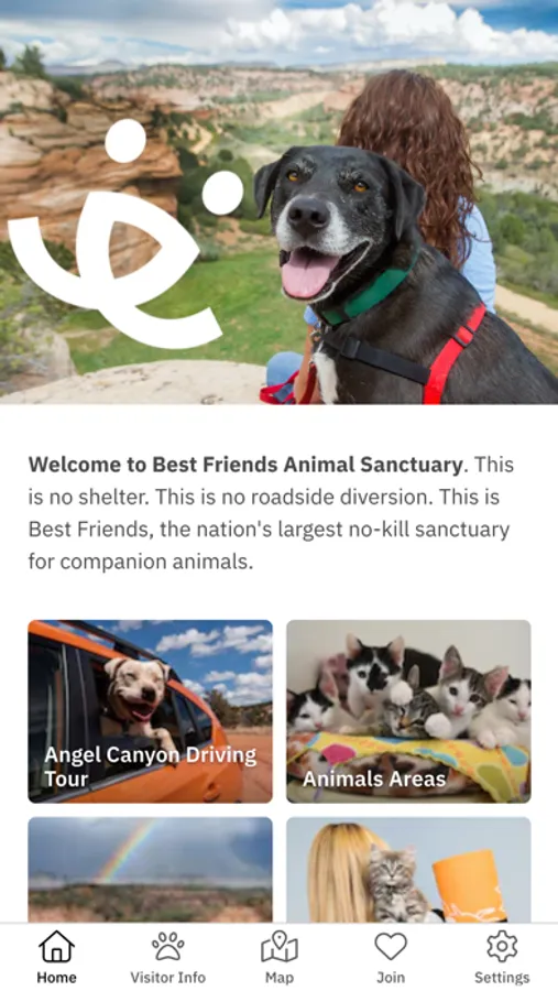 Take a self-guided tour of the world's largest no-kill animal sanctuary for homeless pets. Meet the animals who call it their home-between-homes, and explore each individual area of its work through audio and videos. Included are tips for visiting with children, an exploration of natural lands around the Sanctuary, and tips for where to stay, where to eat, and where else to visit nearby. This app can enhance your experience while you visit Best Friends Animal Sanctuary, or you can enjoy it from the comfort of home.