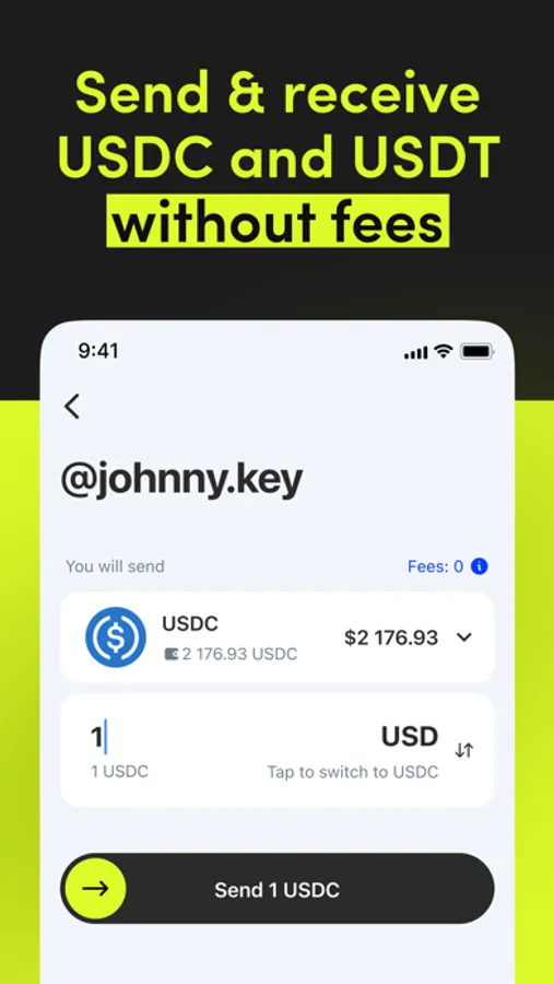 Key App is an easy way to send USDC, USDT, SOL and other with zero fees.