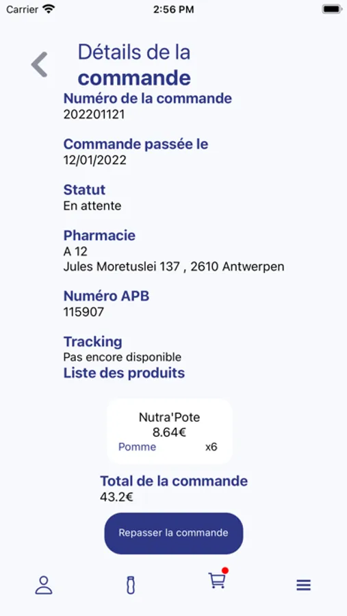Elke patiënt houdt zijn bestelgeschiedenis bij.