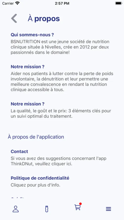 Nous avons créé l’application THINK D-NUT dans le but de faciliter le suivi nutritionnel de vos patients et éventuellement vos commandes de DELICAL.