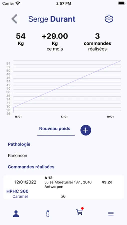 Via de applicatie kunt u de evolutie van het gewicht van uw patiënten volgen naarmate hun behandeling vordert.