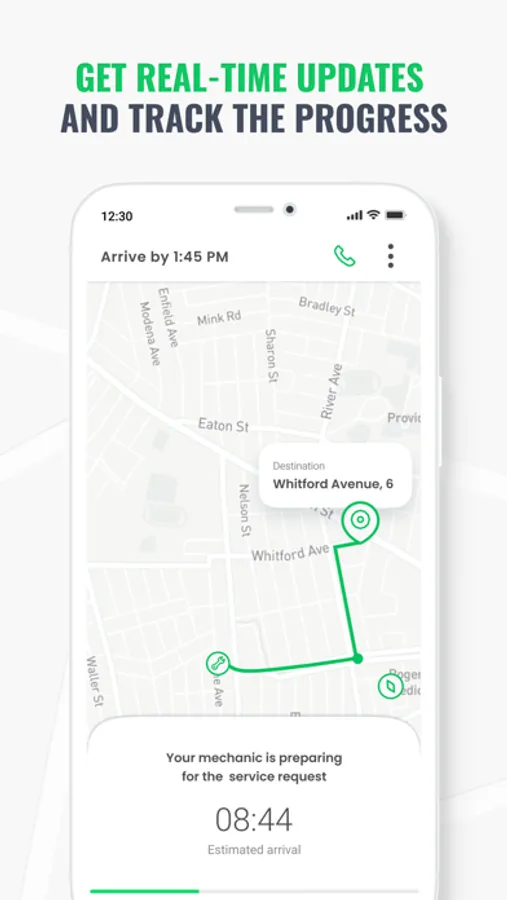 See the estimated service time and track progress on a map as the mechanic makes their way to you. Get notified when the mechanic arrives and the service is complete.