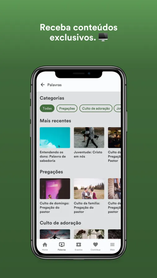 - Siga a agenda e fique por dentro de tudo que acontece na igreja, inscreva-se em eventos e tenha seus ingressos sempre com você.