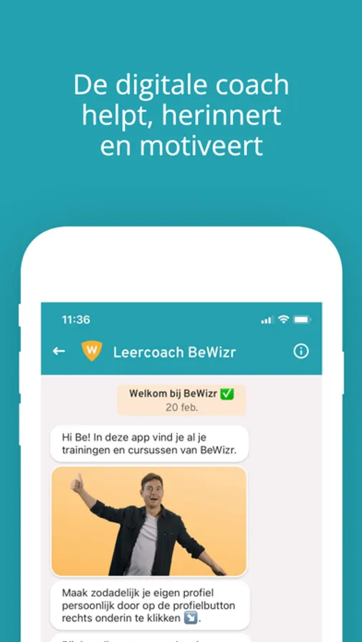 Het volgen van een cursus zal nooit meer hetzelfde zijn met de BeWizr app. Je krijgt automatisch notificaties als er een nieuw onderdeel beschikbaar is. Vergeten een test te maken? De digitale coach helpt je herinneren. En: houdt contact met je coach en mede-cursisten. Dat is leren met BeWizr!
