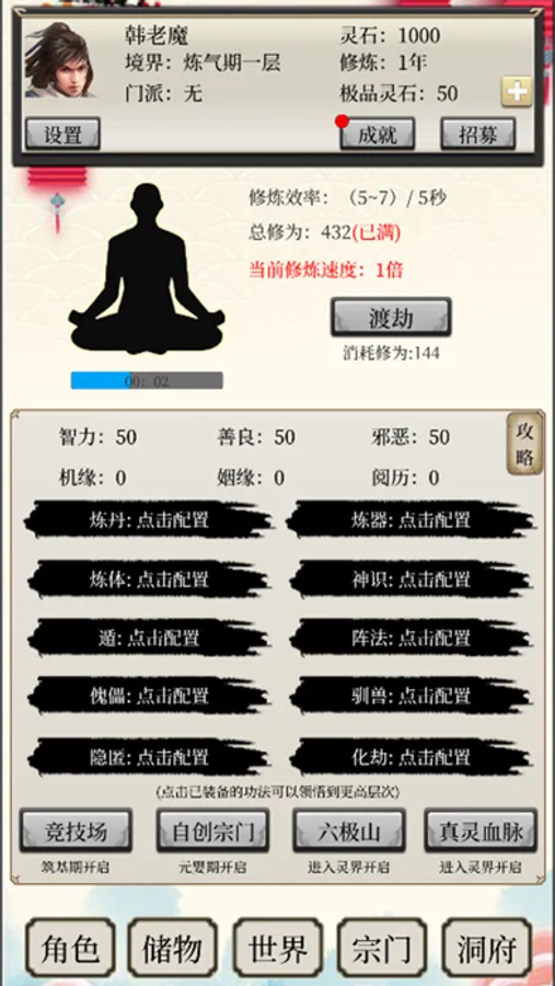 将会在主角境界达到[元婴期]开启,宗门招募、宗门事务、宗门资源、宗门探索、宗门神器圣兽护山大阵、宗门大战等玩法都将会开启。