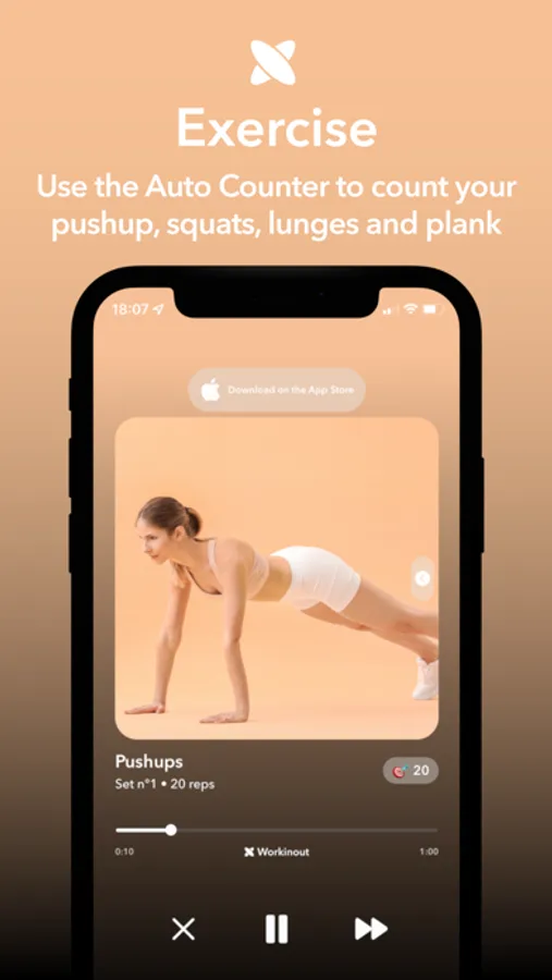 But that's not all - Workinout also comes equipped with a built-in camera that allows you to film yourself during your workout, so you can track your progress and see how far you've come. And with our auto counter, you can easily keep track of your results for pushups, squats, lunges, and plank - no manual counting required.