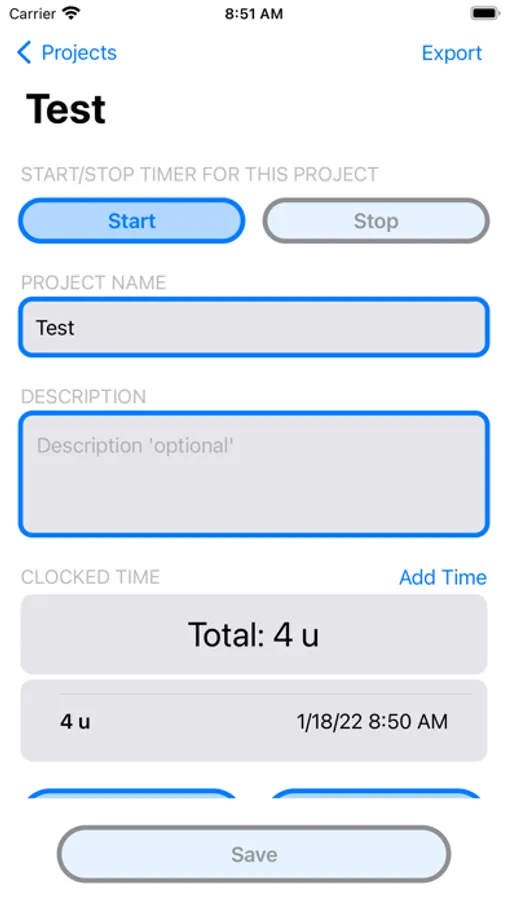 All Projects and clocked times can be viewed within the app and can easily be exported to your clipboard or through email.