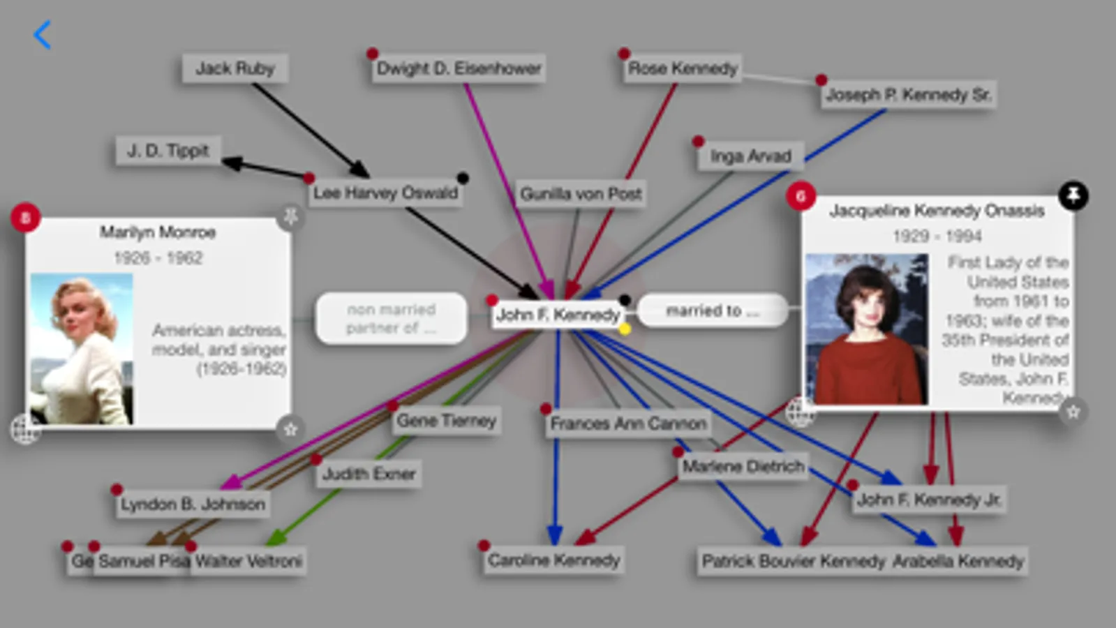 With PEOPLE EXPLORER you can see now a vivid picture of those relations, you can browse through history, see families evolve from generation to generation, philosophers who influenced scientists and poets, musicians who learned their craft from other musicians. There were kings, who were murdered and succeded sometimes even by the same person. There were assasins who were killed by other killers.