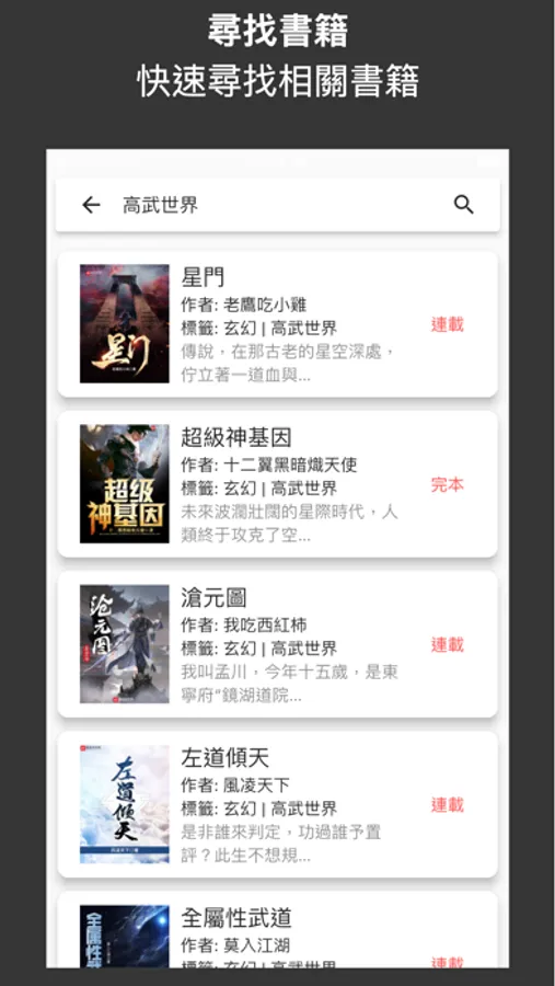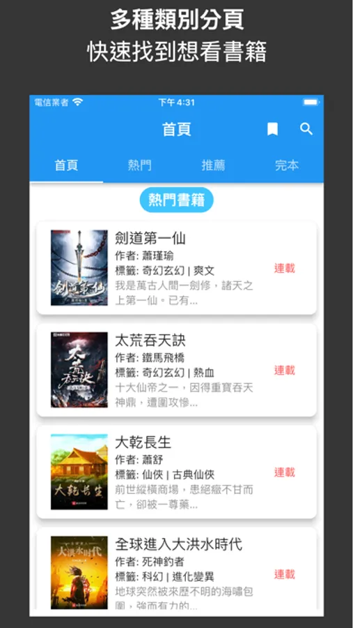 5. 作者、書名、頁籤收尋,快速尋找想看的書籍。