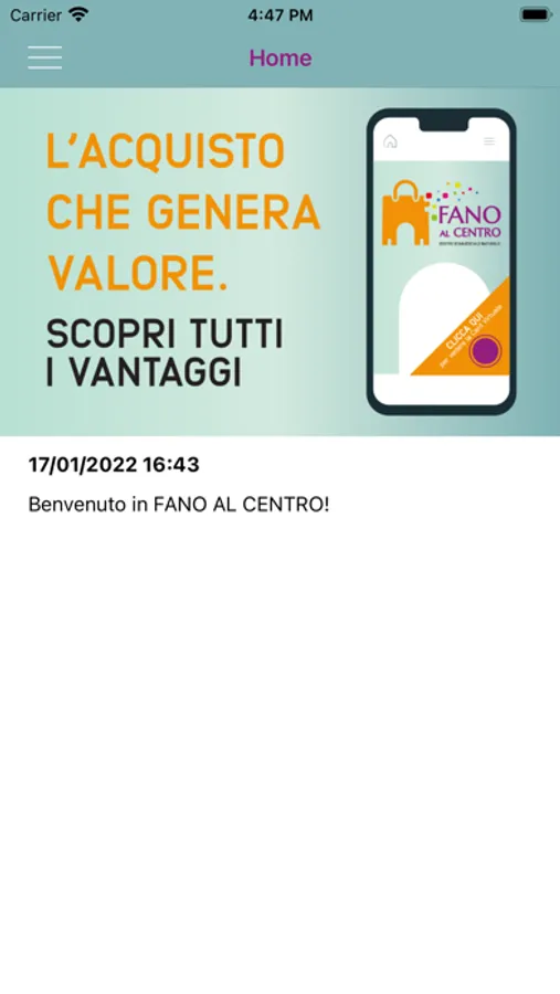 Scaricala subito gratuitamente e registrarti (oppure effettua l’accesso, se hai già le tue credenziali oppure se hai in mano una Card in PVC). FANO AL CENTRO ti augura buono shopping con tanti vantaggi!