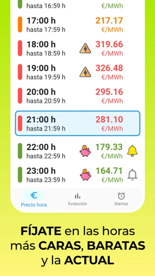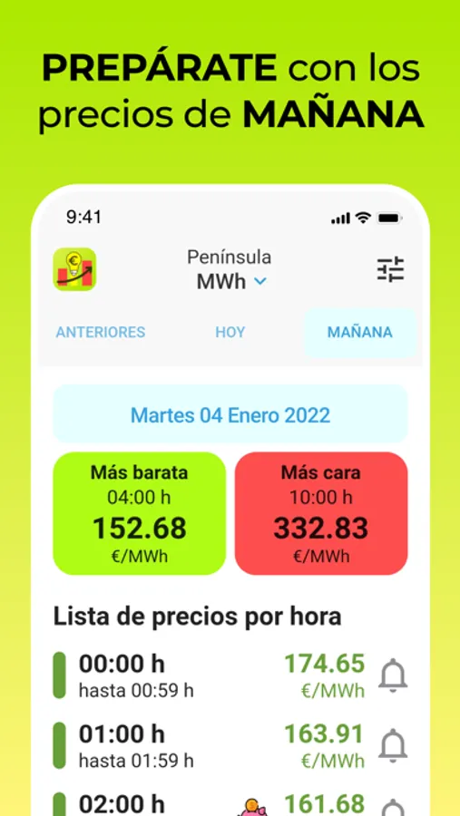 Cada día se publican los precios del día siguiente para que puedas organizar tus consumos de electricidad en las horas más baratas.