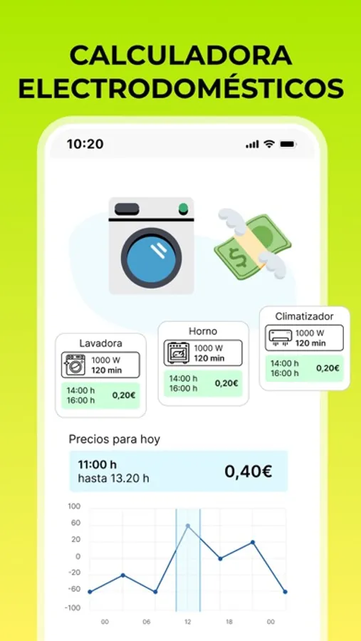 Conoce cuánto te cuesta utilizar tus electrodomésticos dependiendo de su potencia, el tiempo de uso. Así podrás saber cuanto dinero te cuesta poner la lavadora o utilizar el horno. Puedes ver que rangos horarios te cuesta menos encender tus electrodomésticos y adecuar tu consumo.