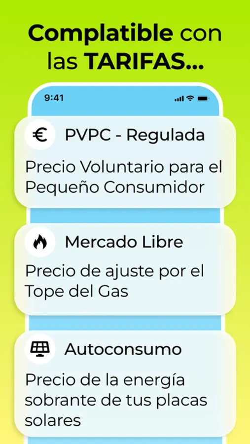 Compatible con la tarifa regulada PVPC y la del mercado libre NO regulada.