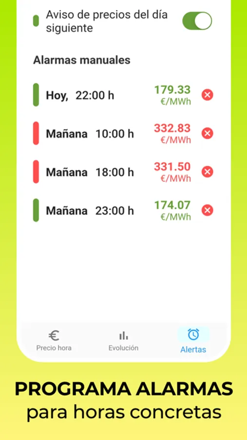 Sección para las tarifas NO reguladas (Mercado libre) con el precio del coste tope del gas RDL 10/2022. Conoce el precio ajuste de compensación por el tope del gas: EXCEDENTE O DÉFICIT MECANISMO AJUSTE COSTE PRODUCCIÓN.También podrás configurar un aviso diario cuando los precios de mañana estén disponibles. Así podrás planificar el día siguiente con alarmas.