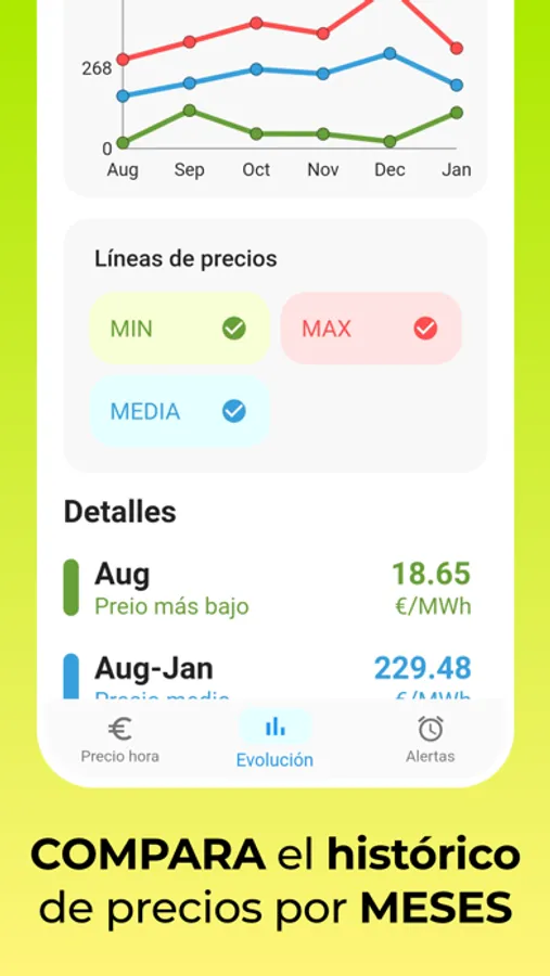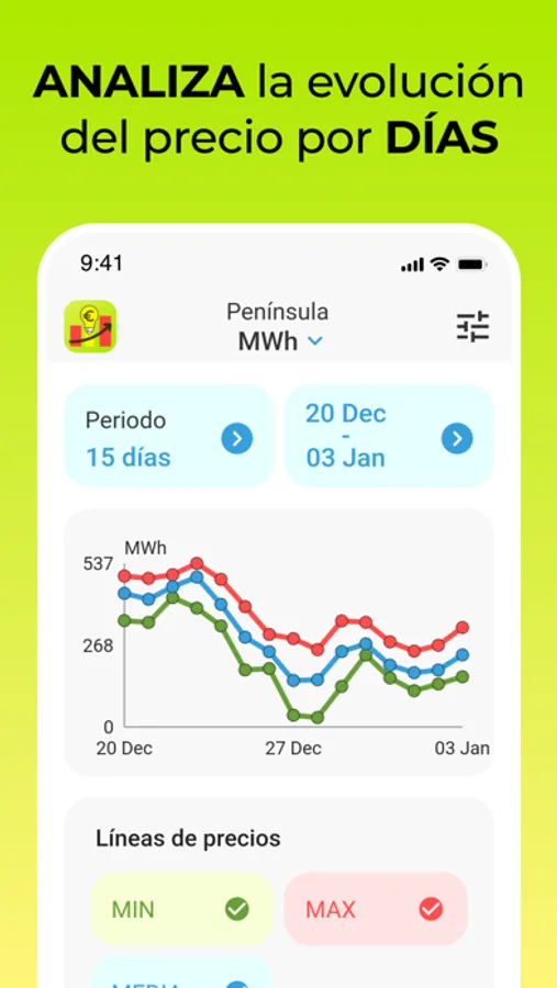 Conoce el valor medio, máximo y mínimo de la luz para diferentes periodos. Con esta información podrás saber si la tarifa PVPC es más barata que las ofertas del mercado libre.