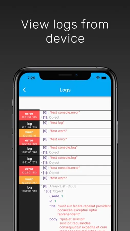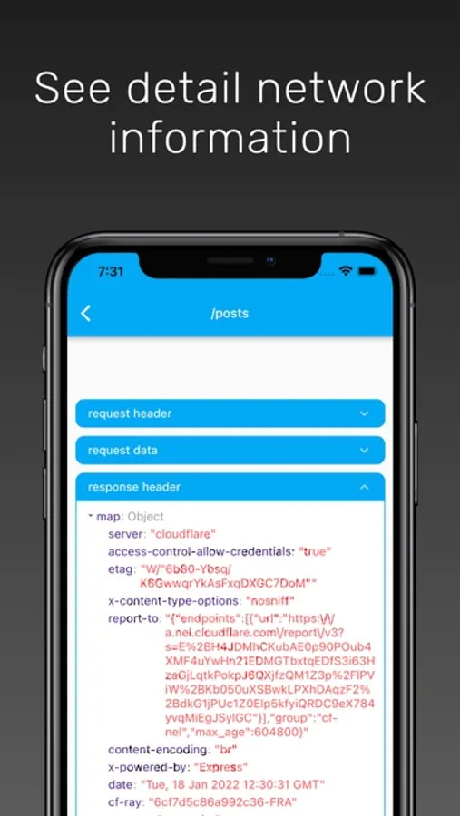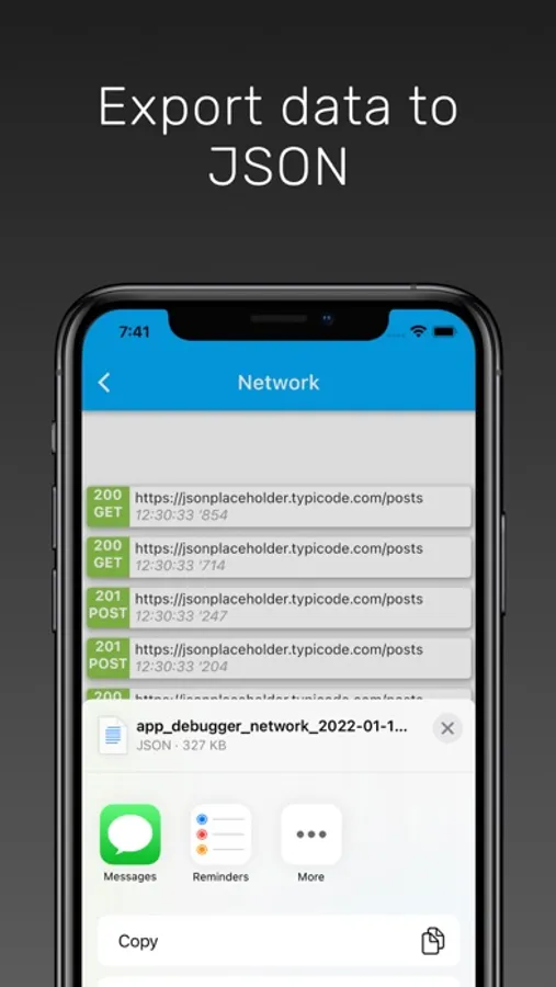 It serves for debugging network requests, catching errors and crashes, as well as for viewing logs from a device with the ability to export data to JSON.