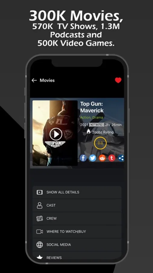 2oobz all-in-one streaming entertainment discovery platform has a massive database of 300K movies, 50K TV shows, 425K cast & crew profiles, 1.7M podcasts and 500K video games.