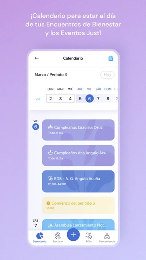 Calendario con todos los eventos más importantes organizados por Just y tus Encuentros de Bienestar.