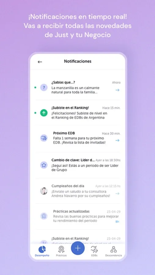 Notificaciones en tiempo real de todo lo que suceda en tu Negocio Just.