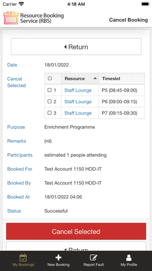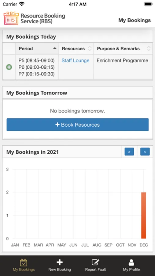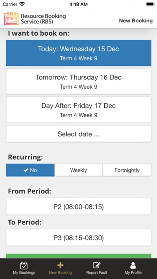 (2) make a new resource booking (single-day or weekly/fortnightly recurring);