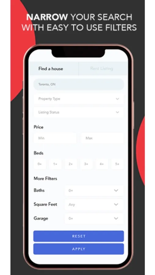 Option to search properties in your neighbourhood and apply user-friendly search to narrow down your criteria.