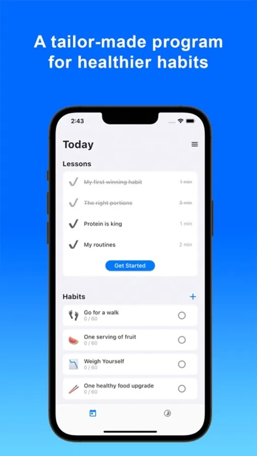 Our app uses behavioral science to retrain your mind to make healthy choices automatically, so these stick in the long run. We’ll help you better understand your relationship with food, how to be more mindful of your habits, and give you the knowledge and support you need for long-lasting change.