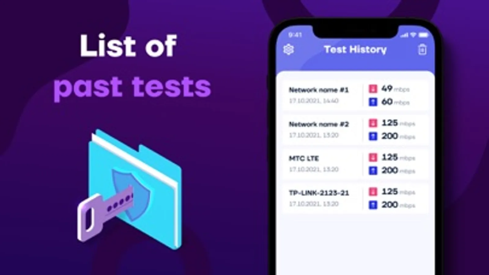 You will have access to the history of speed measurements, the name of the network where the connection came from and the result of speed measurement