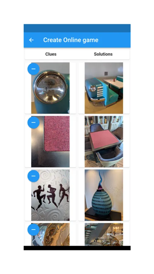 Create Clue / Solution image pairs where the Clue is a close up image of the Solution. You can create as many Clue/Solution pairs as you'd like for your game. You decide the difficulty level of the game based on the Clue images you create.